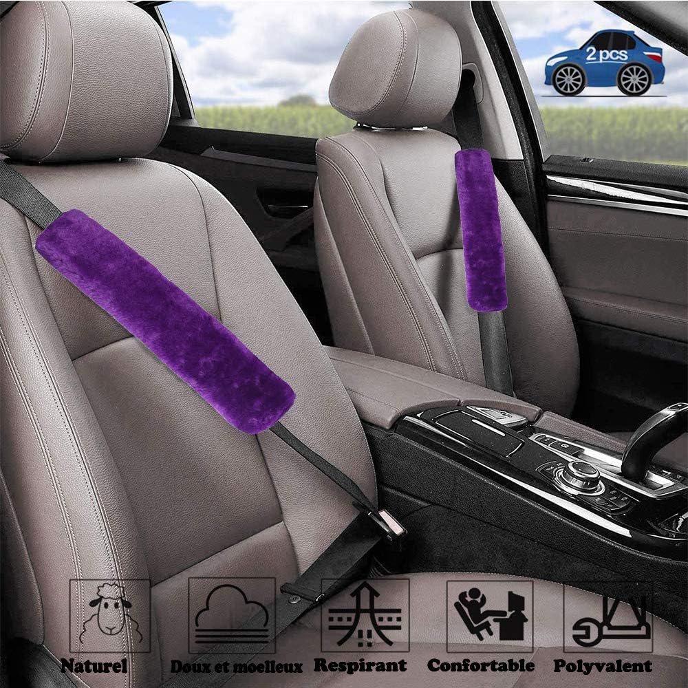Ceinture Enfant voiture 2 pièces Coussin de Nuque en Laine Amovible Epaule Ceinture de voiture de Sécurité pour protection du cou de l’épaule (violet)