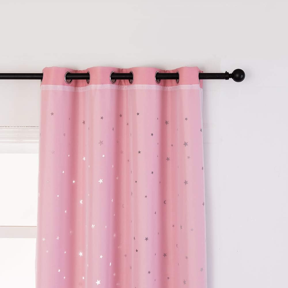 Galapara Double Rideaux Enfants, Rideau Oeillets Draperies d'etoile Panneaux Double Couche Combinaison de Fil de Tissu Combinaison avec Formes Perforées Lumineux Penetrate pour Siesta