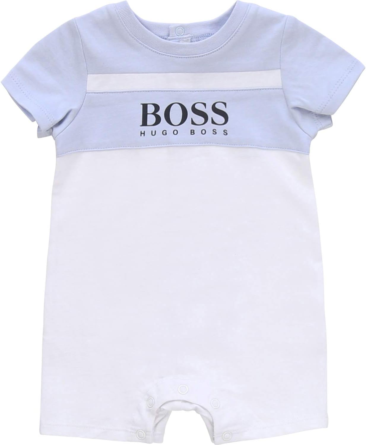 Combinaison de qualité supérieure pour petits garçons de la marque Hugo Boss - Couleur : bleu clair/blanc/bleu marine - Qualité supérieure - Composition : 100 % coton - Garnissage : 96 % coton, 4 % élasthanne.