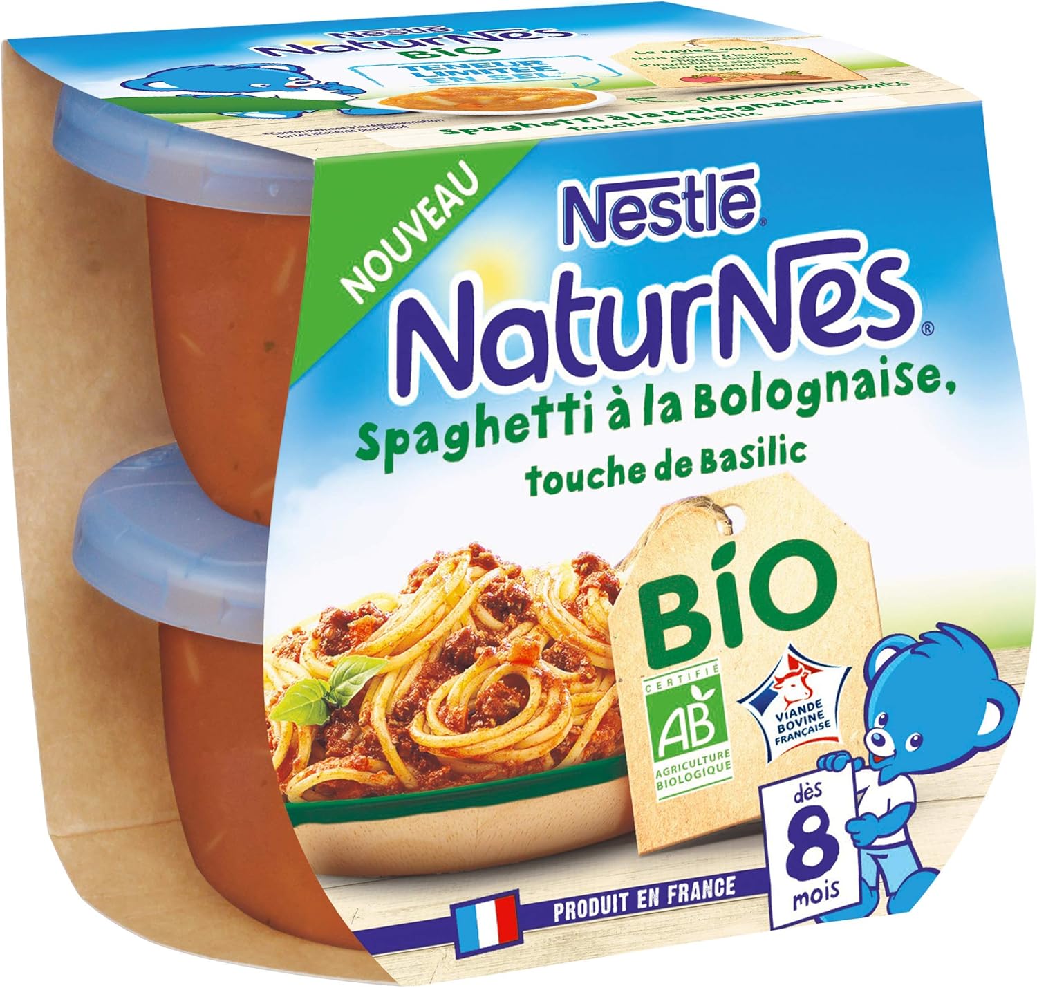 Nestlé Naturnes BIO - Petits pots bébé Spaghetti à la Bolognaise, touche de basilic - Dès 8 mois - 2x190g