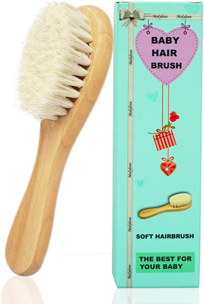 Molylove Brosse cheveux bebe, à cheveux Poils de chèvre doux Premium Brosse à bébé en bois pour Cradle Cap, garçons et filles, pour enfant et nouveau-né, Baby Shower Cadeau