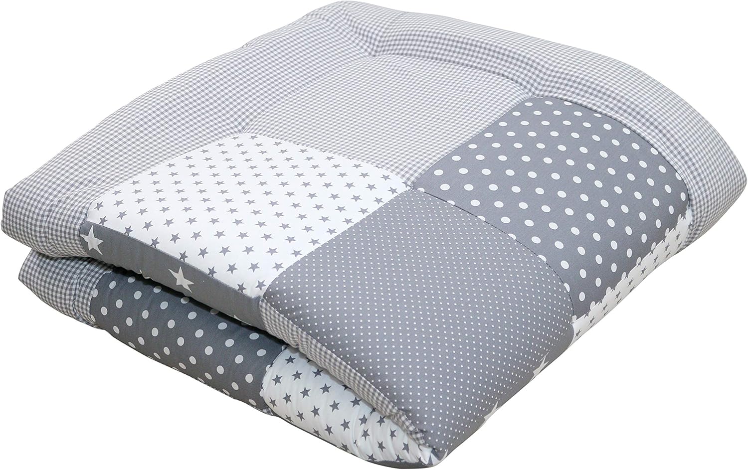 ULLENBOOM ® Tapis d’Éveil et Matelas pour Parc Bébé Étoiles Grises (100x100 cm Tapis sol bébé patchwork, Motifs pois et vichy)
